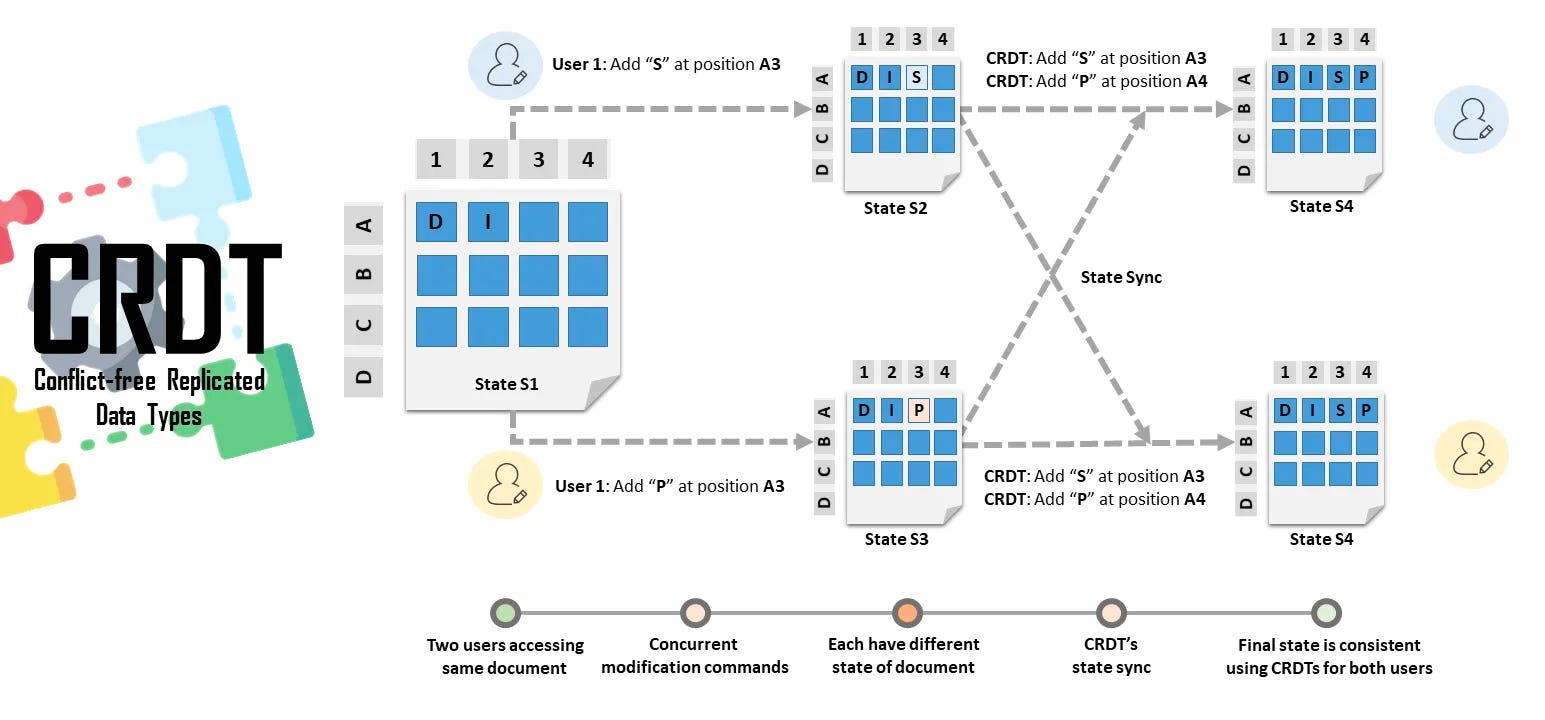 A tecnologia que permite esse tipo de arquitetura são os CRDTs (Conflict-free Replicated Data Types).