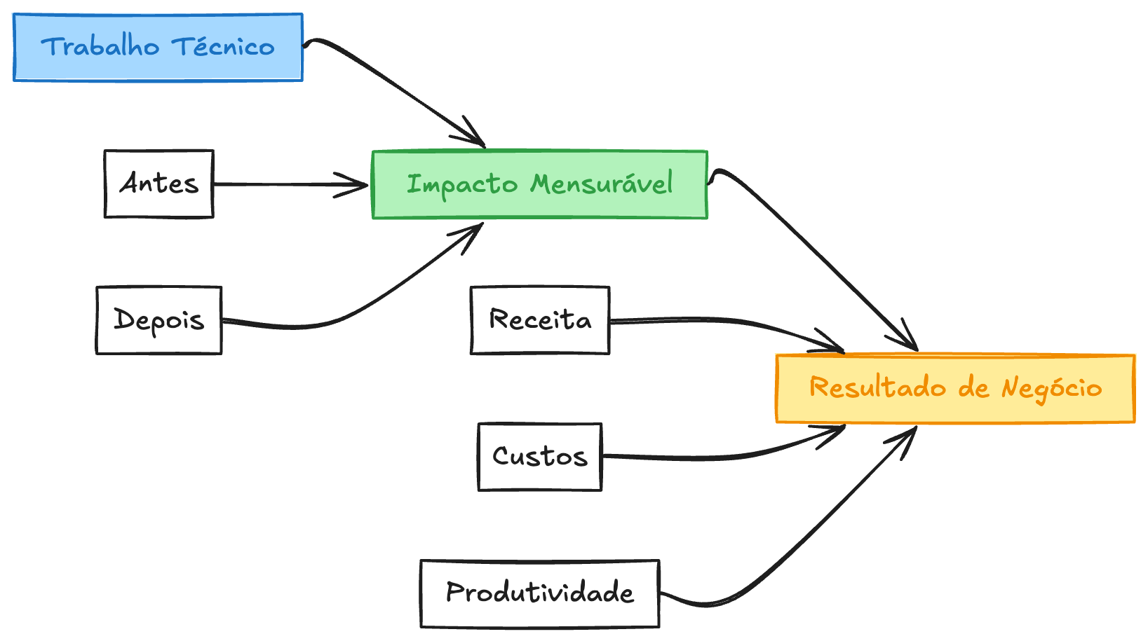 A chave é mostrar a cadeia completa: sua ação técnica → impacto mensurável → resultado para o negócio.