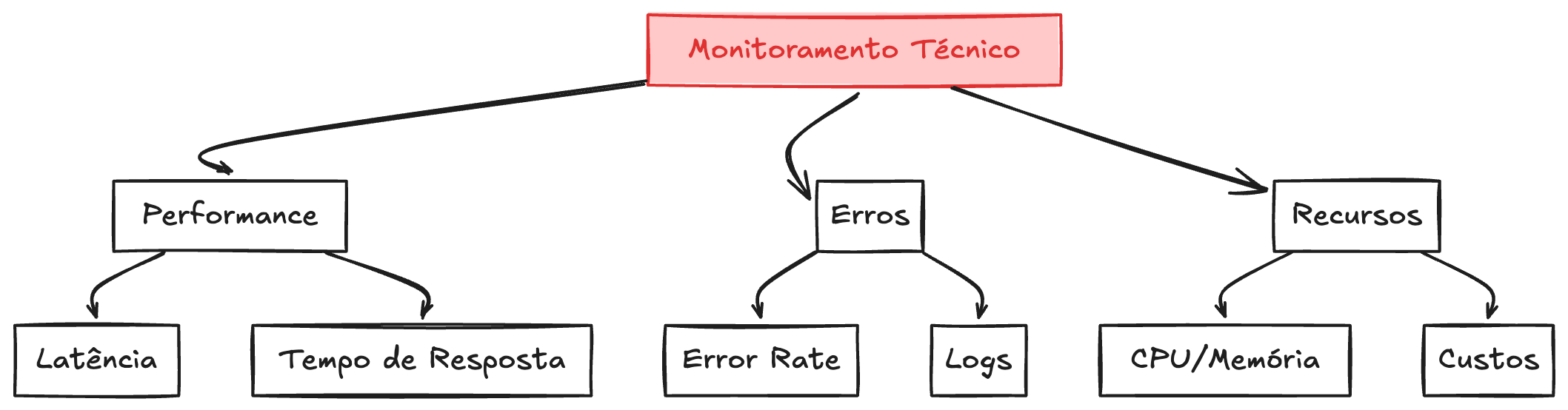 Métricas técnicas são fundamentais porque mostram a saúde do seu sistema. Não importa quantos usuários você tem - se o sistema está lento ou instável, ninguém vai querer usar.