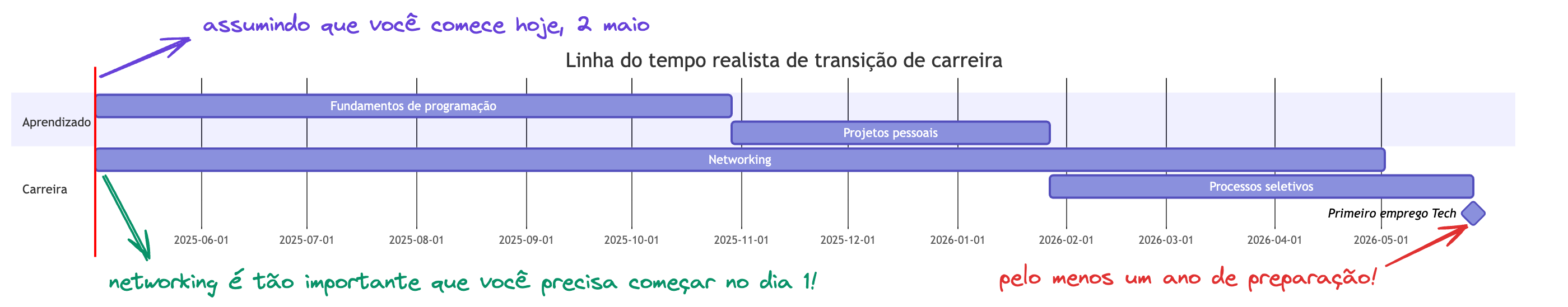 Esqueça promessas de "vire programador em 3 meses". Uma transição bem-sucedida geralmente leva 1 a 2 anos de investimento consistente, sem garantias.