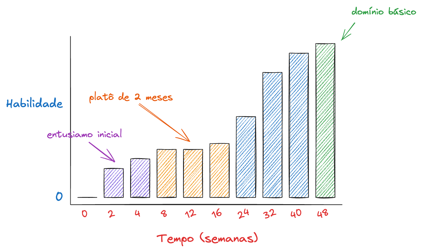 O ciclo emocional do aprendizado em programação passa pela empolgação inicial, confusão crescente, frustração profunda, e então a satisfação de uma pequena vitória, antes de repetir o ciclo em um nível mais avançado. Reconhecer este padrão ajuda a não desistir quando estiver na fase de frustração.