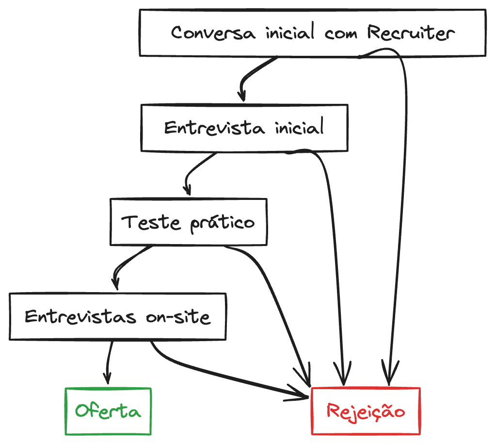 Quanto mais senior você é, menos ênfase tem as etapas de programação. A entrevista comportamental e de system design passam a ter maior relevância.