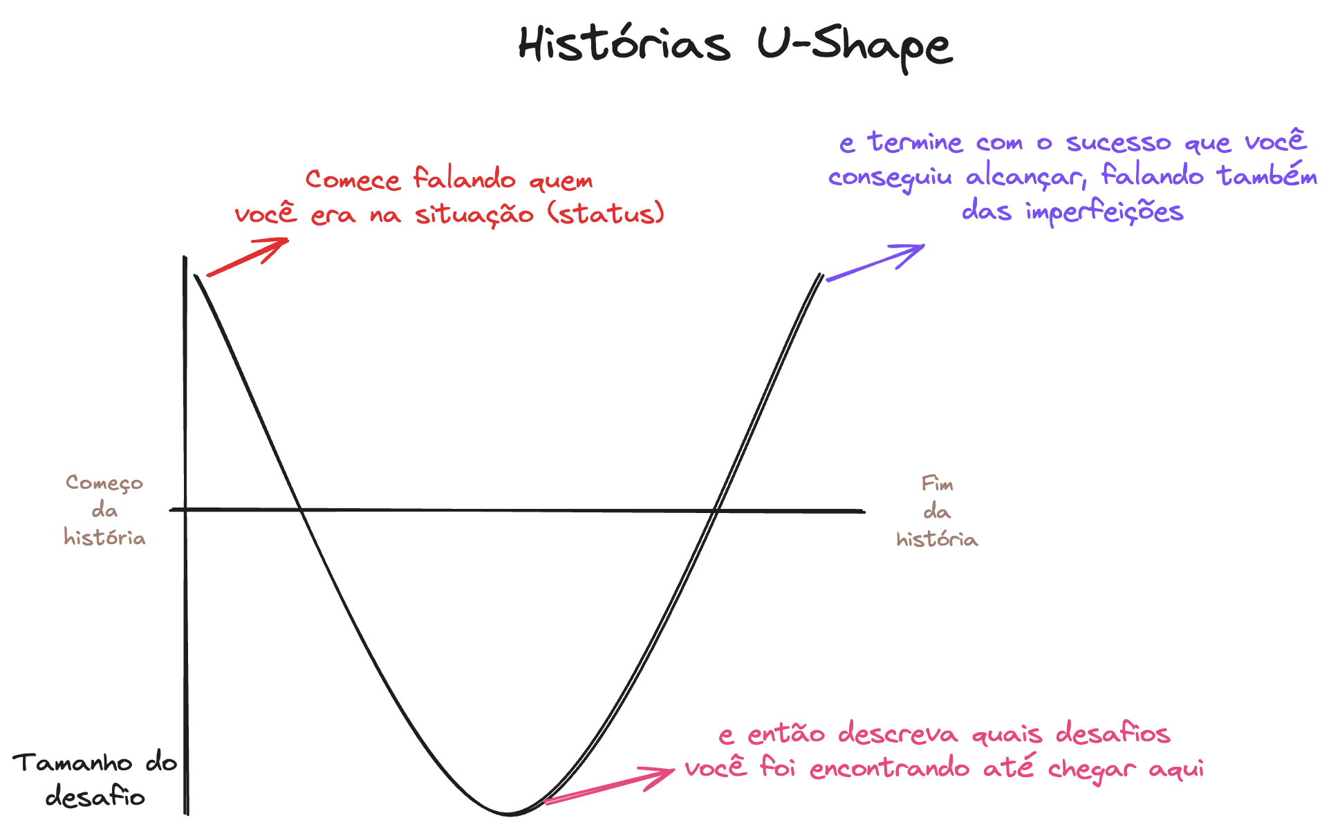 Use a estrutura U-Shape para criar narrativas impactantes (status → conflito → sucesso)