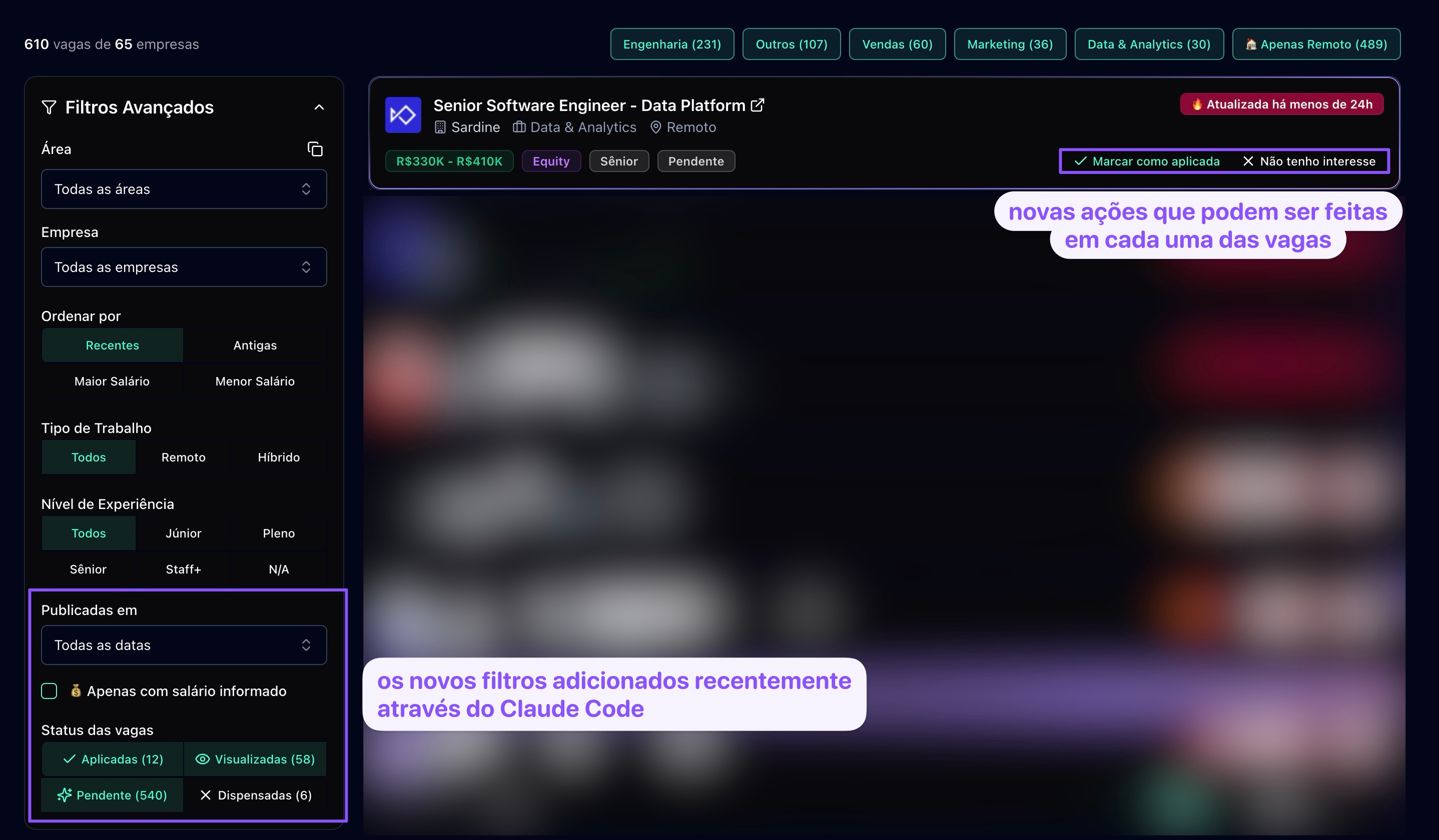 Recentemente, recebi o feedback que era difícil identificar quais vagas já apliquei / visualizei / não tenho interesse. Pois não havia um jeito fácil de fazer isso na UI.