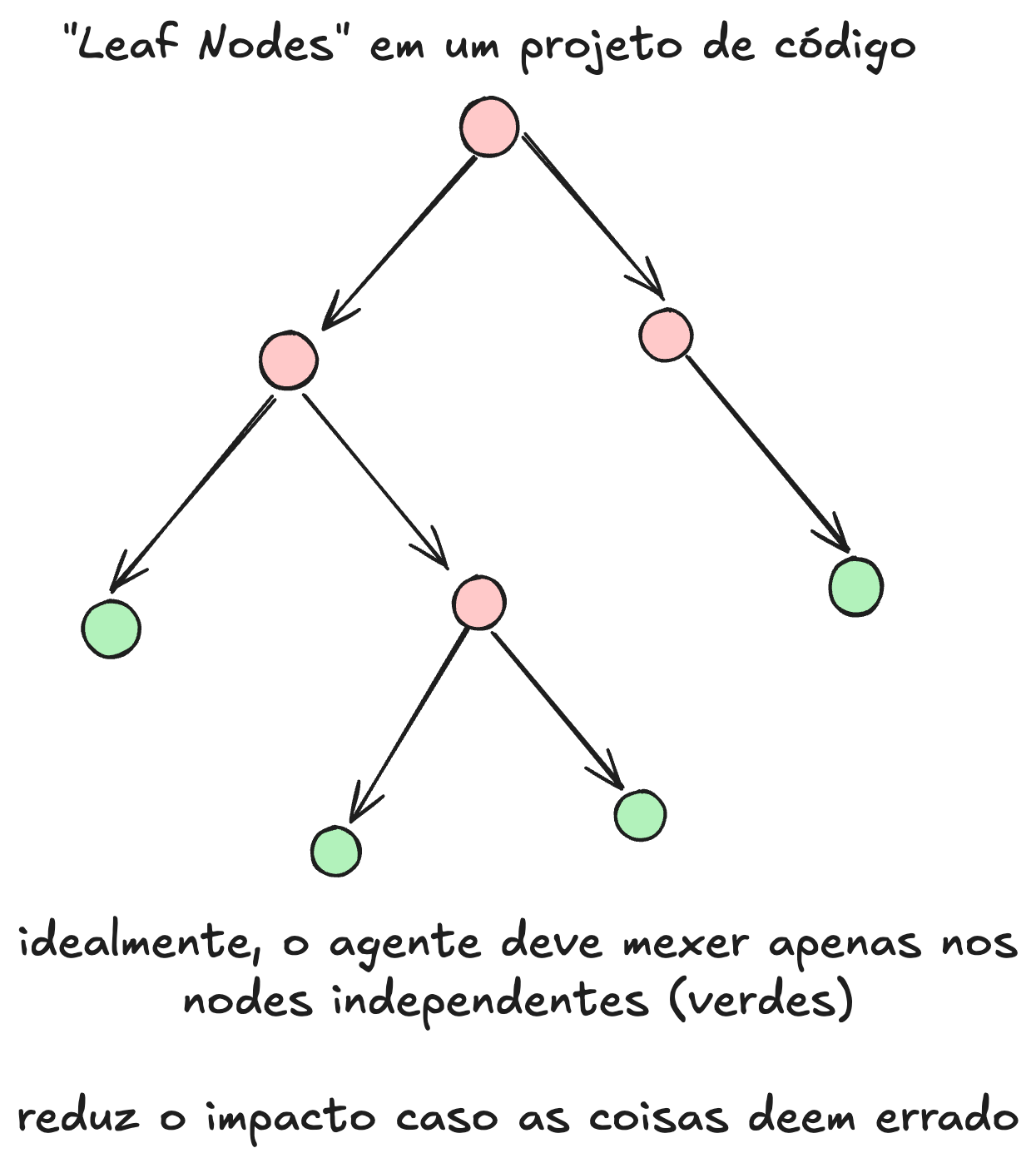 Um dos conceitos mais importantes: pensar em "leaf nodes". São partes do código que nada crítico depende. Lugares seguros pra deixar o agente trabalhar.