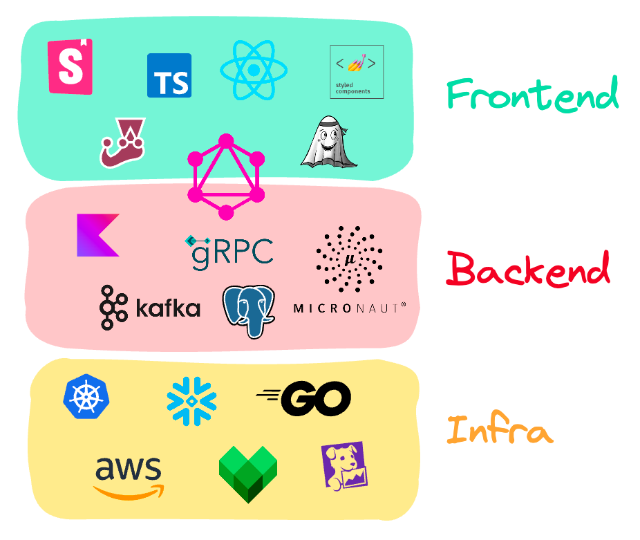 Nossa stack é moderna e bem estruturada. Foi idealizada por veteranos da indústria, seguindo as melhores práticas para microserviços e, agora, monólitos modulares.